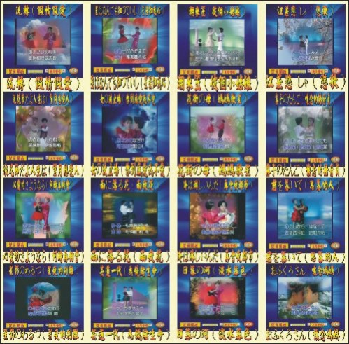教唱日本經典老歌16首內容: 1---流轉(假情假愛) 2---星星知我心 3---潮來笠(彼個小姑娘) 4---戀歌 5---望月想愛人 6---你到底愛我不愛 7---媽媽歌星 8---懷念的播音員 9---何時再相會 10--雨夜花 11--再會夜都市 12--思慕的人 13--星夜的別離 14--芸道一代(為錢賭生命) 15--淡水暮色 16--懷念媽媽