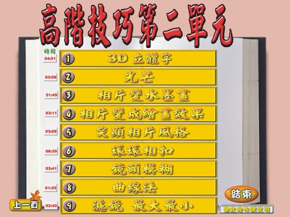 採用互動式光碟多媒體教學方式,程式自動執行,不用安裝,螢幕動畫實況、生動有趣、簡單易懂,教學內容最豐富、做實在,如同把家教請回家一對一的教學法,讓你反覆學習也不厭倦,不限定任何年紀、基礎,輕輕鬆鬆就能學會任何軟體及許多新奇技能。 教學光碟 , 課程將近 6 小時.