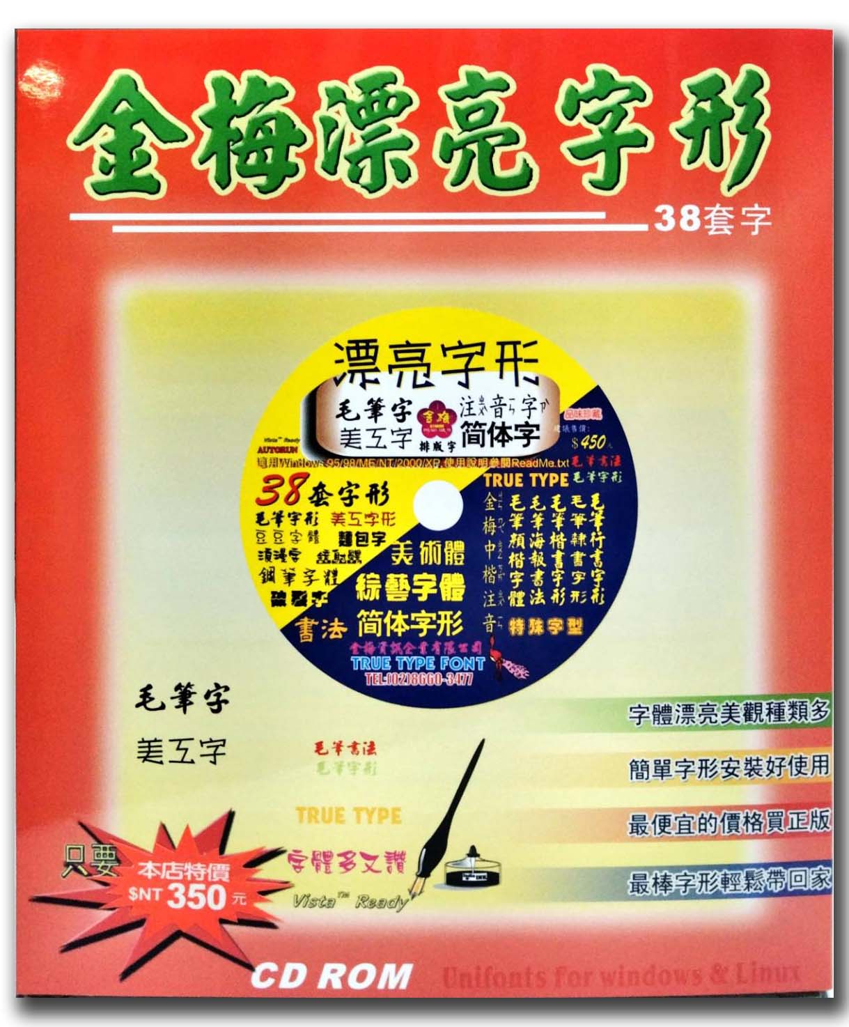 【金梅全球資訊網】--中文字型,字型授權,字體授權,會計軟體,進銷存軟體,金梅字型,教學光碟,總帳系統,商用軟體.,字型特價.,合法字型.