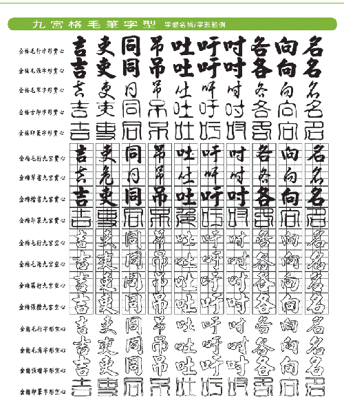 九宮格毛筆字型: